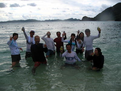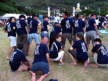 く、くらい・・・ごめんなさい!顔が見えない(泣)シルエットで分かってください! でも、強風の中40kmを漕破した12人の顔はほんとうれしそうでした!! 8時間のアイランドホッピング、お疲れさまでした〜 この後は待ちに待ったおまつりですよ〜♪ |