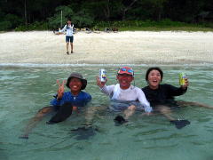 慶良間まできれいに見える空の下、 夏休みの子供のように、めいっぱい遊びました。 たくさん日焼けしただろうなぁ。 Kさん、また遊びにいらしてくださいね!! Wさん、まだまだあと6日間、よろしくお願いします! |
