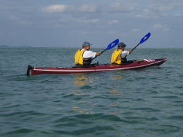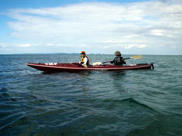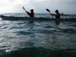 後ろから見ると、不思議の国のアリスにでてくる双子のように見えるHさんとTさん。 パドル、PFD、帽子の色までお揃いで、 パドリングのリズムまでおんなじです! かわいい。。。 (って言うとおこられてしまいそうですが) 行きも帰りもこの姿を見て、ほのぼのとしてしまいました。 |