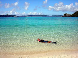 天気予報では、2日目で北よりの風になり天気が崩れてくるぞ!! ということだったので、青空のうちにハナレに遊びに行きました。 オリオンビール片手に青い空、青い海に囲まれていると、今が11月だというのを忘れてしまいます。 |