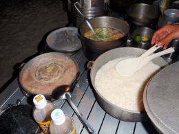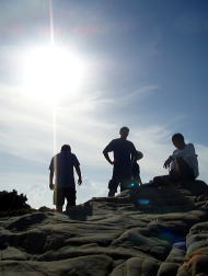1日目と2日目の夜ごはんです。 漕店初、カレー鍋と冬の野菜・白菜を使った中華風のメイン料理を作りました。 蓋をあけた途端、激しい雨が降ってきて、そのまま砂浜のはじっこにある洞窟に逃げ込み、 岩の中での夜ごはんを味わうことになったのは2日目のこと。 「なんだか原始の生活みたいだねー」と雨を見ながらのごはんは すぐになくなってしまいました。 |