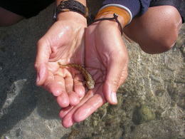 魚といえば、ママもSさんも捕まえていたのでした。 左のトビハゼらしきものははなしてやりましたが、Sさんが手にしているベラは 子どものとき以来の釣りで釣った獲物! さばいて、塩焼きにしていただきました♪ |