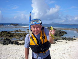 今回の慶良間にはいろんなヒト・動物がいました。 まずは英語が話せるマイキー。のちにやどかり選手権にも出場していました(?) そして、シロクマくん。 |