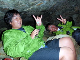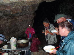 2日目からの洞窟生活の様子。 夜は冷たい風を雨を遮ってくれて、あたたかい場所で過ごせました。 ビール部隊(通称)は12時近くまで起きていたようです。。。 |