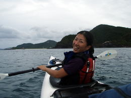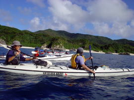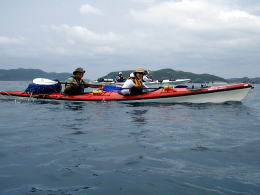 左からメンバー紹介です。シーカヤックでのキャンプが初めてだというSさん。 買出し部隊ではスターンでラダーとトローリングに挑戦し、 Uさんと数々の困難を乗り越え無事にビーチにたどり着きました。 去年に引き続き参加されたAさん。シングル艇でわしゃわしゃ漕いでいました。 再来週のレースのスタート練習(?)もしていたようです。 |