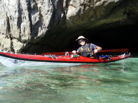 阿波連のビーチにちょっと寄り道。 カヤックで一艇ずつ、トンネルの中を通ってハナレに向かいました。 |