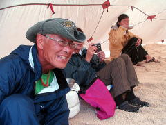 こちらもシングル艇のKさん。 初日は酔っ払ったみんなをテントまで送り届けてくれました。 Sさんの釣りの師匠でもあります。 |