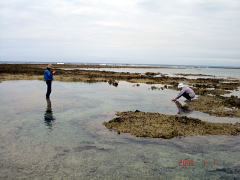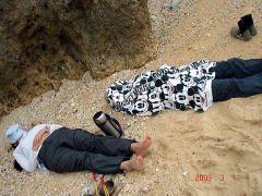 何をするにも一生懸命なお二人。 ルリスズメダイという青い魚を写真に撮るため、石灰岩に這いつくばり(い、痛そう・・・)、 お昼ごはんのあと、太陽がでてきてぽかぽかのお昼寝でも、 どんなに屍のように見えようが、真剣にお休みでした(笑) |
