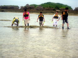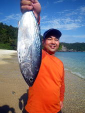 来たときと違って、おおきく引いた砂浜から漁港まで帰ります。 砂浜でカニがウミヘビを食べていたのにはびっくり! 波も風もない穏やかな海って、のんびりできてまたいいですね〜 Tさん、次回はトローリングに挑戦してみましょうか! またお待ちしています!! |