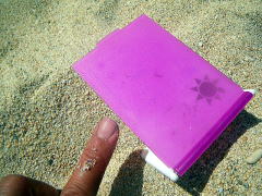 この鏡、実は紫外線の量を測ることができるのだとか。 ピンクが濃いほど、紫外線がおおく・・・ ん?・・・まっピンクですね、、。 この4日間でみなさん、ほんといい感じに日焼けされてました。 |