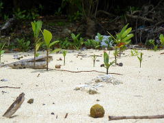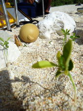この赤ちゃん、3月にここで食べたたんかんの種が育ったみたいなんです。 すごい!! ちゃんと真水もあったのかな? 集めてみたら10本近くもありました。 がんばって育つんだよ〜 |