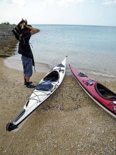 約1時間半、向かい風とうねりの中のツーリング&トレーニングをがんばったあと、 お昼ごはんまでに釣りをするTさん。 相棒の釣竿とルアーで、今年の初めにはアオリイカをGETしたそう!! これからもっともっと釣りにでかけたいと、今日は久しぶりの釣りの感触を確かめていたようです。 腰まで海の中にはいって、寒くなかったのかな? |
