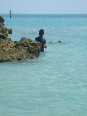 サンゴでできた、何もない島。 木も草も生えてません。 近くに飛んでいるのは、着陸する飛行機。 途中、遊びに来た人もいましたが、ほとんどふたり占め♪でした〜 |