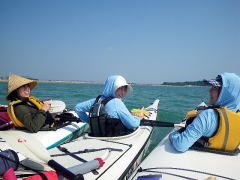 KBさんとSさんは、11月ぶりのシーカヤック。 お二人でタンデム艇に乗っていただきました。 風が強くてラダーの操作がちょっとむずかしかったですね。 KBさん、いい写真撮れましたか? |