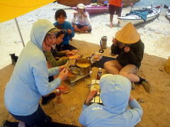 太陽を遮るものがなにもない島で、タープの下でお昼ご飯。 8名分なのに、作りすぎちゃいました・・・ 沖縄在住のSさんから「庭になっているんです」とライチをいただきました♪ おいしかったです。ごちそうさまです! 種は持ってかえって、苗がでるまで育ててみようと計画中。 うまく芽がでてくれますように。 |