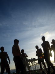 強風と大雨の後は、座間味島の方向に花火のような夕焼けが見えました。 一瞬の花火。 もしかしたら、見ていたのは私たち6人だけかもしれません。 |