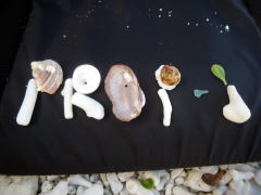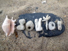 みらいさんが作った、「ギシップ」のサンゴ文字。 サンゴと貝の顔もかわいいです♪ |
