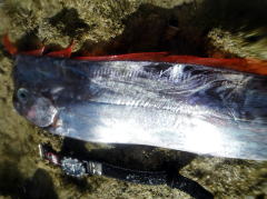 大城が買出しの帰りにカヤックから拾った魚です。 漕店にある図鑑にはあてはまる魚はいませんでした・・・ リュウグウノツカイかな〜と言っていたのですが、とさかの具合がどうも違う。 体の薄さは似ているんだけどなぁ。。 マース煮で食べてみると、白身でうまい!とは言えない味、、。 どなたかこの魚の名前を知っている方、教えてください! |