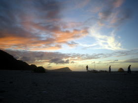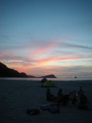 キャンプ最終日の儀志布での夕焼け。 ほんの数十分だけですが、 ゆっくり座って眺めるのが一番のしあわせです。 |