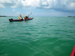 初めてだというのに、ぐいぐいと進んでいく紅芋号。 女性二人が漕いでいるとは思えない・・・カヤックの進みかたです。 ラダーの使い方が上手なんです! |