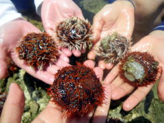 シュノーケリングで遊んでいたタイドプールに隠れていたのは、シラヒゲウニ。 ちっちゃいので食べませんでしたが(ほんとです) 全部で15匹! こんなにたくさん見て捕まえたの、自分も初めてですー |