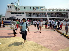 5月のGW並みに人の多かった那覇泊港→渡嘉敷港へのフェリー。 寝転がれない、座れないなんてあたり前でした。 あー、それにしてもいい天気〜♪ 天気がいいというだけで、うれしくなってしまいます。 |