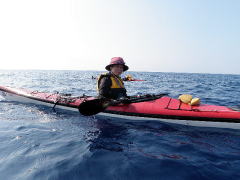 今日はいつも漕店に遊びにきてくれる方が、 だんなさんを連れてきてくださいました。 「初めてのシーカヤックだけど、シングル艇に乗りたい!」 ということで、乗ってもらいました!! 風があんまり強くなくてよかったです。 ぐいぐい進んでいましたー |