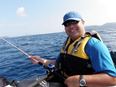 5月のツアーで高額なカツオを釣ってくれたO関さんが、今回もマイ釣竿を持って慶良間に上陸! 出艇前にルアーを選んで、準備をします。 今回は何が釣れるかな〜魚料理が作れたらいいな〜 O関さん、よろしくお願いします♪ それにしてもおっきい手!! |