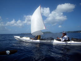 儀志布島のヌシルからゴールの渡嘉志久ビーチまで大城艇の目標は 「漕がずにセーリングだけで進むこと」。 EXPEDITION艇だけにできる特権です。 いいなぁ。。 |
