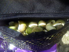 みんなで海のさんぽをしてきている間、 女王はこんなにたくさんのアマガイを拾っていました。 今日の夜のお味噌汁のだしにするそうです。 |