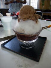 海から帰ってきたあと、いっしょに冷やし物を食べに行きました。 糸満のとある冷やし物専門店。 クリームぜんざい(チョコ)、おいしそうでしたー♪ また3人で遊びにおいでねー |