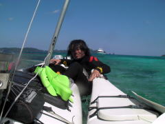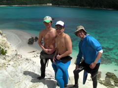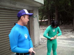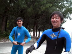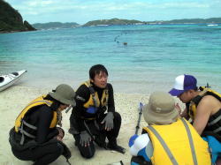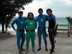 3日目:鯨を追って慶良間海峡にでましたが見れませんでした。 天候もいいので渡嘉志久湾でシュノーケリング。 我々日本人は肌寒いのでウエットスーツ着用ですがス○さんにジャ○○ィンさんは平気のようでした。 確かウエットスーツ持っていたんだが? |