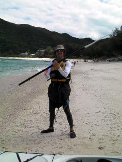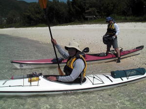 リピーター率100%:鯨はどこ行った?ツアー 3月20日〜22日の慶良間ホエールウオッチングツアー。 今回のゲストは年に2,3度は漕ぎに来てくれる方々です。 全員が漕げる方々なので全艇シングル艇で行こうと思ったのですが ソフトクーラーで冷やしたビールが積載できないことが判明、急遽1艇だけはタンデム艇を使用する事になりました。 |