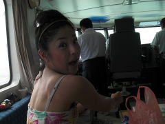 ![]() ![]() 11日朝:凪になり10:00渡嘉敷発の高速船で帰り那覇あたりを観光する事ることにしました。 高速船は満席で船長のご好意で操舵室の特別シートにご招待。 こんなの滅多にありません。 |