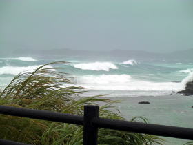 ![]() ![]() 9日台風が通過。 左:阿波連湾の波です。 波が立つ度に「ウォ〜ォ〜・・・凄い!」の連発。 阿波連崎での大波です。 |