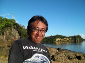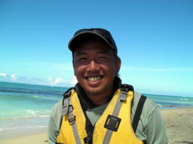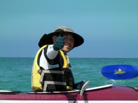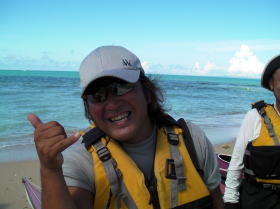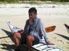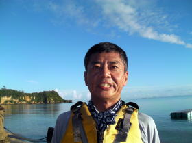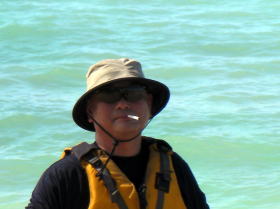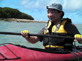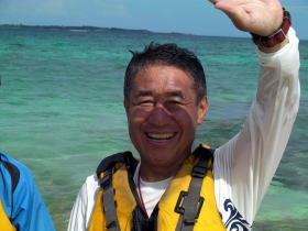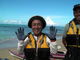 特別写真:大見謝さん ツアー出発地点でカヤッカー漁師に会いました。 何時も漁場を教えてくれます。 |