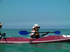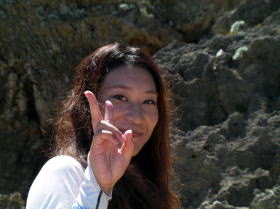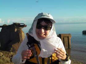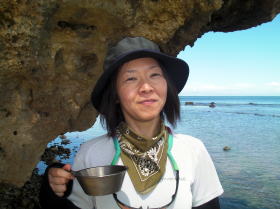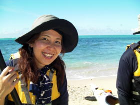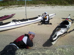 ![]() 鈴○さんの奥様 パドリング中はバンダナで顔を覆ってましたが上陸後は木陰で素顔を見せてくれました。 |