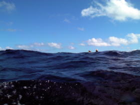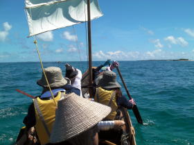 ![]() ![]() ![]() 17日AM7:15伊是名島北東の風やや強く 波1,5b向かい風の中スタート。 風も向かい風ではあるがアクシデントもなく伊平屋村野甫島着。 野甫着小休止。 後7kmで伊平屋港ゴールです。 |