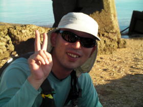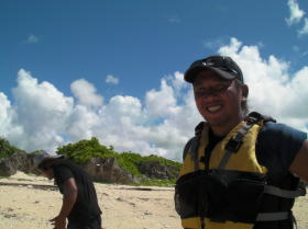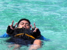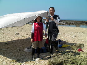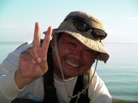 風も波もなくベストコンデイションのツアーです。 ![]() ![]() 左:僕の遠い親戚にあたる美○さん。 右:どうみてもウチナージラーの旦那さん。 |