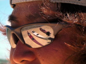 ![]() サングラスに写ったカヤックがグッドです。 |