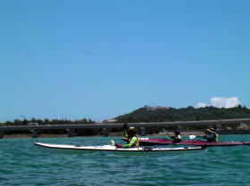 ![]() ![]() 北風約8bから10bの中、横風を受けながら志喜屋〜久高島までNOストップで1時間20分で漕ぎきりました。 |