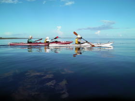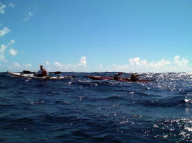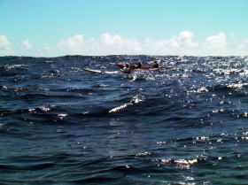| 今帰仁〜伊是名島〜伊平屋島〜辺戸岬〜与論島〜フェリーで那覇へ。 ・・・の予定だったが台風11号の影響で 今帰仁〜23km〜屋那覇島〜2,5km〜伊是名島〜11km〜野甫島〜7km〜伊平屋島 までは漕ぐ事が出来ました。 今回のアドベンチャー企画はあえなく途中断念でしたが、 9月20日台風が去りまだ3,5メートルほどの台風の余波が残る中、瀬長島〜チービシ往復25kmの スリル満天のアドベンチャーツアーを催行しました。 ツアーの模様の写真をちょっとだけ覗いてみて下さい。 |
