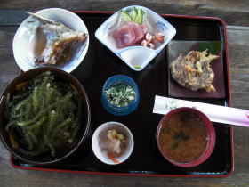 ![]() ![]() 上陸後は海に入りクールダウン。 今日のランチは久高島特産ウミブドウ丼を定食屋“とくじん”で食べてきました。 ウミブドウがてんこ盛りの丼、カツオのカマ焼、鮪にマガキ貝の刺身、 もずく天ぷら、苦菜の白和え、漬物、魚の赤だし 美味しかったけど島料金ではありませんでした。涙 |