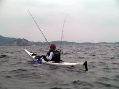 ![]() マイPFD持参で背中にロッドホルダー2セットして参加してくれた 釣りキチ増○さん |