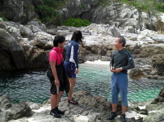 ![]() ![]() ![]() ムカラク島に到着。 飛び込む人もいれば、釣りに夢中になる人、ゆっくりお茶タイムにする人、 ムカラク島での一時。 |