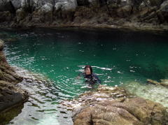 ![]() 昨年に続き2回目参加の嶋○さん 今回ムカラク島で飛び込んだのは嶋○さんのみでした。 |