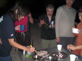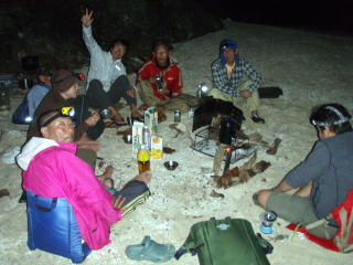 ![]() 夕食後は焚き火を囲んで泡盛で今宵の一時。 |