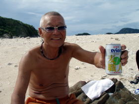 ![]() 更にムカラク島から渡嘉敷島のクンシ浜までのロングツーリング。 夜は焚き火を囲んで泡盛を何本飲んだかな? |