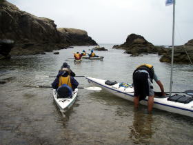 ![]() 15日朝:今日も雨でした。 右:出発前、潮が満ちてくるのを待つ。 |