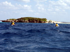 ![]() ![]() 14日:北東の風、前日の停滞分まで漕ぎ出しましょうと 安護の裏湾からケラマ諸島南端にあるムカラク島(飛込み島)までのロングツーリング。 |